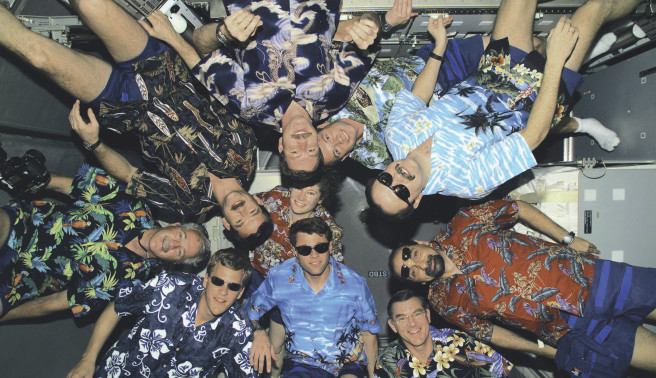 В этот день космонавты и астронавты надевают на себя яркие цветные рубахи и солнцезащитные очки. Кто-то надевает даже шорты. Они пьют прохладительные напитки и загорают возле единственного иллюминатора, где нет защитного фильтра от ультрафиолета.