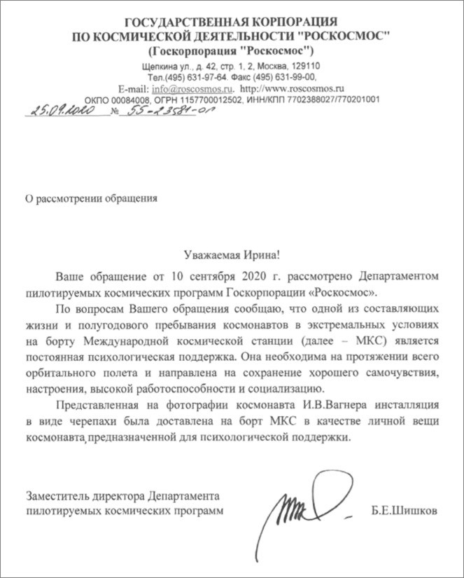 И спустя какое-то время ответ из Роскосмоса был получен. Весьма интересный, скажу вам. Я бы даже назвал его немного комедийным.