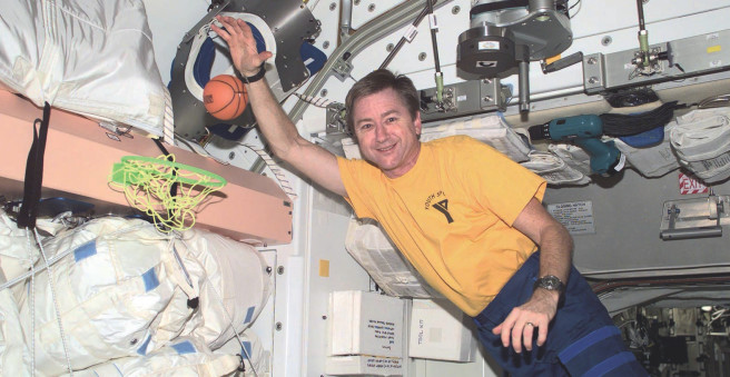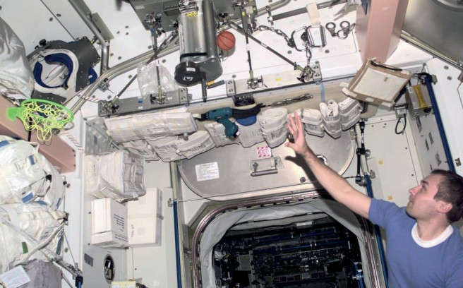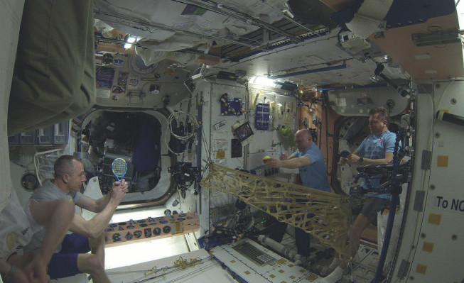 А… вот оно что! Баскетбольная корзина на МКС, оказывается, есть. И мини-мяч есть. Ну, тогда всё нормально. Нет. На самом деле это просто издевательство над здравым смыслом и над наивными поклонниками «консервной банки» под названием МКС.