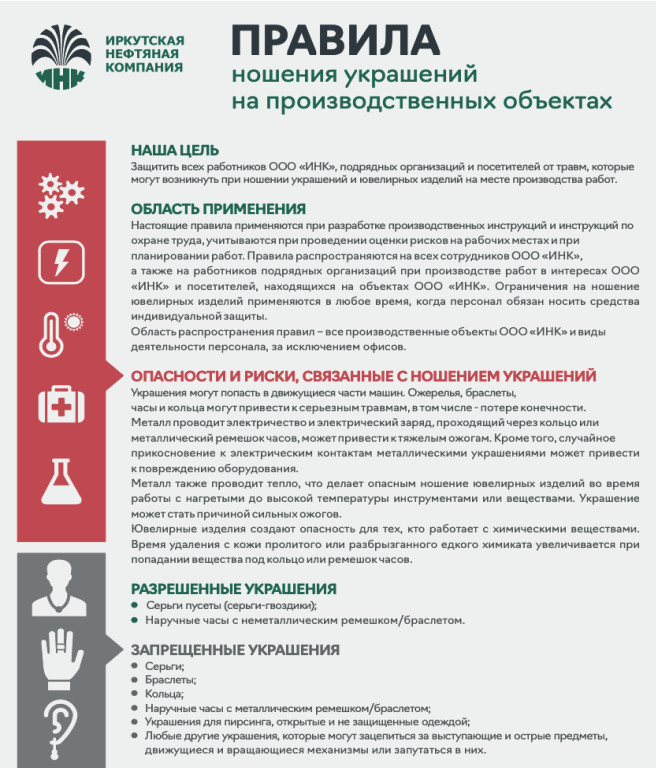 Вот внутренние правила ношения украшений на иркутской нефтяной компании.