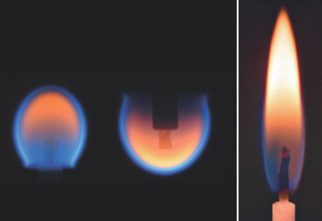 Слева: огонь в невесомости, справа: огонь на Земле.
