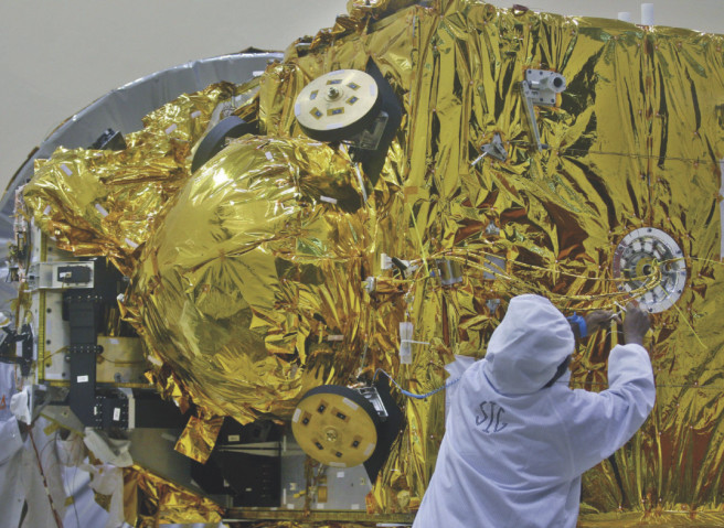 Экранно-вакуумная изоляция на космическом аппарате.