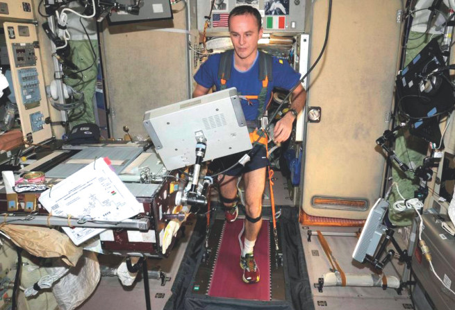 Каждый день космонавты занимаются спортом. Это нужно для того, чтобы держать в тонусе мышцы, которые в состоянии невесомости быстро атрофируются. Они бегают на специальной беговой дорожке, притягивая себя к ней ремнями, крутят педали велотренажёра ногами и руками, занимаются на силовой установке. На занятия спортом тратится 2–2,5 часа в сутки без выходных.