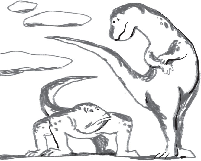 Превращению наших предков в лилипутов мезозоя предшествовала длительная эволюция. Не отличались миниатюрностью ни в большинстве своем хищники-горгонопсы: длина крупнейших горгонопсов (впрочем, именно горгонопсы были тупиковой ветвью эволюции) – иностранцевий (Inostrancevia alexandri) составляла более трех метров, ни уже упомянутые выше дейноцефалы, да и в кругу дицинодонтов лисовиция была хотя и непревзойденным великаном, но не единственным. Среди предков и родичей предков млекопитающих преобладали персонажи масштабные, значительные, размером превосходившие потомков в сотни, а то и тысячи раз. В интернете можно найти множество карикатур, на которых тираннозавр переживает из-за того, что динозавры превратились в куриц. Какой-нибудь ранне– или среднепермский тероморф – «пеликозавр», повстречай он своего юрского потомка, был бы поражен не меньше, чем тираннозавр, встретивший курицу. Более того, он имел бы для недоумения больше поводов – в отличие от диногиганта он действительно был предком этих крошек. Итак, перед нами несколько вопросов, как мне кажется, взаимосвязанных. Первый – каким образом динозавры (вернее, еще не сами динозавры, а их родичи – круротарзы) вытеснили наших предков из большого размерного класса, какие эволюционные приспособления им позволили это сделать? Второй – почему млекопитающие так успешно теснили динозавров в мире карликов и коротышек?