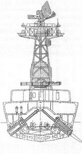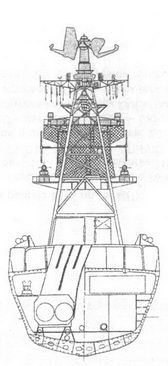 [Закрыть]). В отличие от прототипа они имеют большие водоизмещение и длину, вооружены крылатыми ракетами П-20 (четыре КТ в районе носовой надстройки), а на месте кормовой 76-мм АУ АК-726 оборудован подпалубный ангар для вертолета.