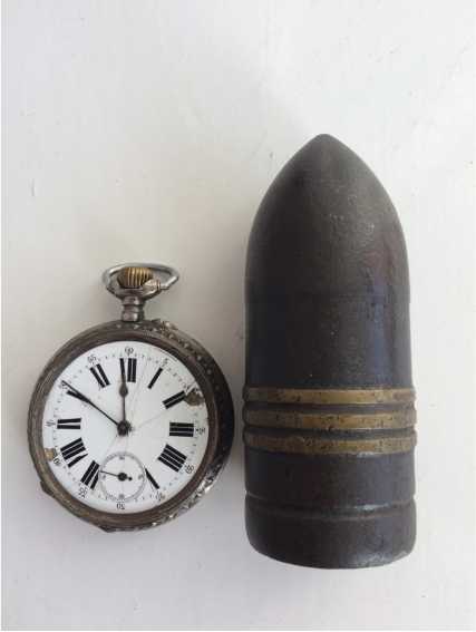 Рис. 10. Карманные часы в серебряном корпусе, принадлежавшие Главному врачу Осовецкого крепостного военного госпиталя № 1 Н.А. Федорову, и поврежденные в результате германского артиллерийского обстрела 28 февраля 1915 г.