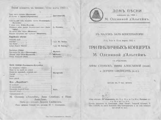 Рис. 14. Программа публичных концертов «Дома песни М. Олениной Альгейм».