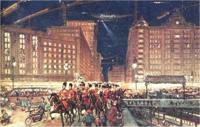Рис. 43. Почтовая карточка товарищества скоропечати А.А. Левинсона «Москва будущего». Москва, 1914 г.