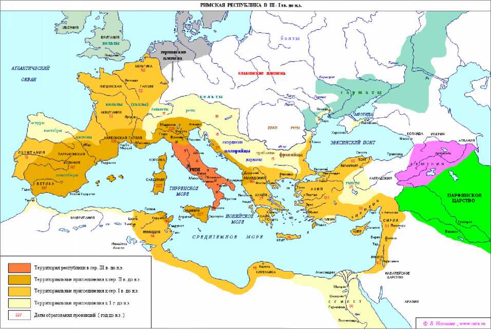 Расширение территории Римского государства с 111 по I вв. до н. э. Источник: www. ostu. ru