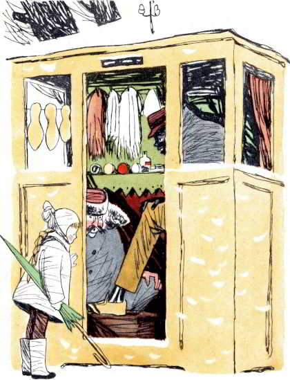 Каково же было его удивление, когда старушка в синем халате протянула ему совершенно чистые пальто и шляпу. Он недоверчиво посмотрел свою одежду, она была без единого пятнышка. Он решил, что это старушка вывела неприятные пятна, которые наставил снег, и с благодарностью наклонил свою каракулевую голову – поклонился старушке. А та замахала рукой.