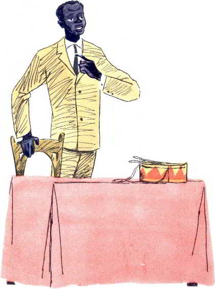 Он осмотрел этот странный там-там и стал тихонько постукивать пальцами по бычьей коже. Пионерский барабан издал хрипловатый звук, а негр начал напевать: