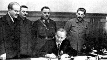 (тот, кто сидит и подписывает – Отто Куусинен)
