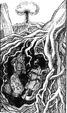 Несколько громадных стволов упали сверху на яму, где, вжавшись в землю, прикрывая лицо руками, лежали мальчик и девушка! Потом сверху упала зелёная масса, бывшая раньше лесом, и в яме стало совсем темно…