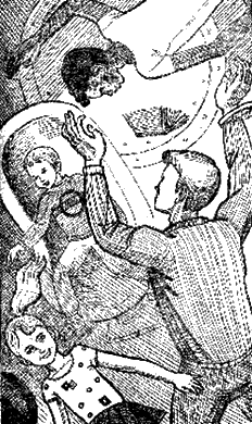 После завтрака дети быстро уснули, да и меня клонило ко сну. Голос профессора приободрил меня и успокоил. Раз профессор в корабле – ничего страшного не произошло, он сумеет посадить «Ласточку» на Землю. Почему-то я был уверен, что мы сядем, ведь с нами нет ни одного человека команды! Только почему он от нас прячется?