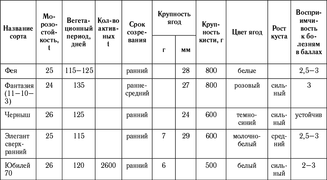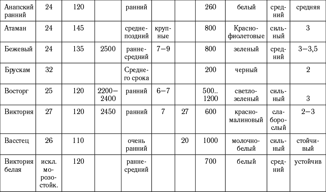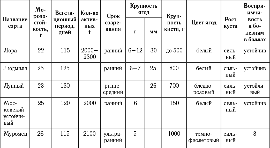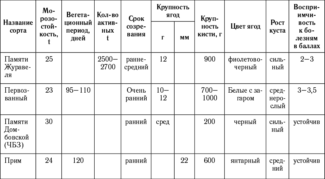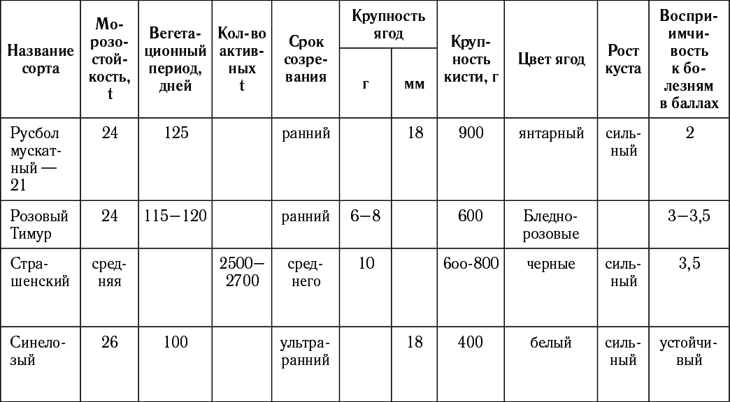 То есть очень важно не брать сорта винограда с активными температурами выше указанных параметров в таблице вашей местности!