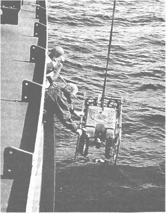 Водолазы отправились на корму и начали там подготовку своего снаряжения. Под личным руководством Фолькера судно было снова приведено в точку, где мы потеряли аппарат, а американцы спустили на дно подводного робота.