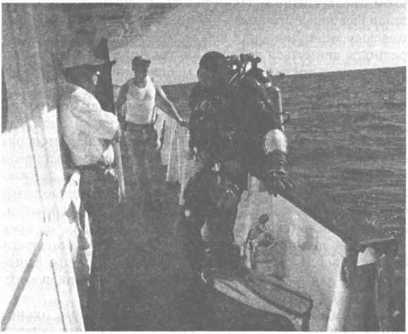 С грузом 120 килограммов за спиной водолазам теперь нужно было только подойти к краю борта и, пройдя через отверстие в нем, которое расширил газовым резаком Губерт, просто спрыгнуть в воду.