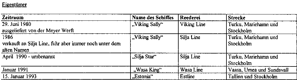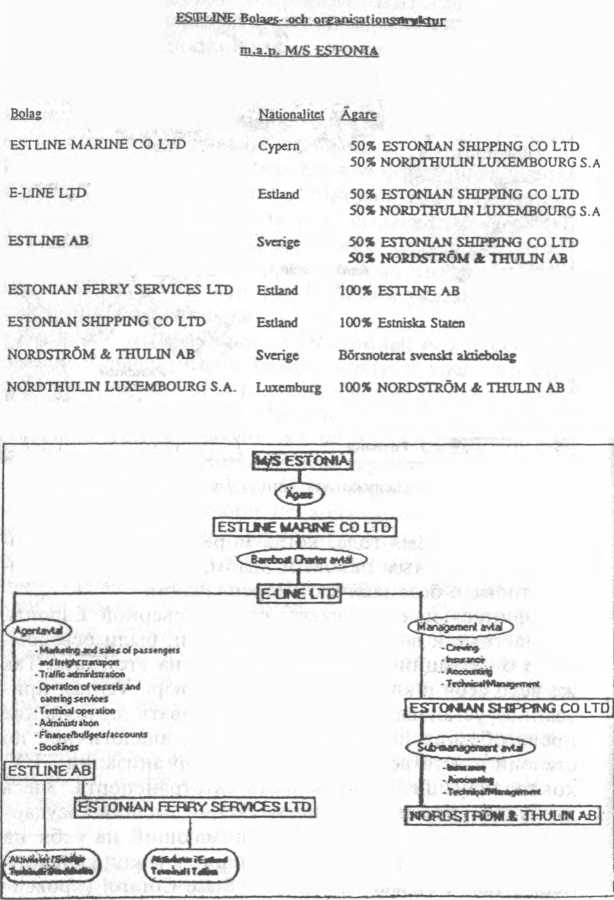 Хотя, как это станет ясно из последующего, «Эстония» потерпела кораблекрушение не только из-за ее технического состояния, а скорее потому, что это состояние поспособствовало тому, что паром затонул так быстро. Вследствие этого определенную долю ответственности за случившееся должно нести и высшее руководство шведских органов надзора за безопасностью мореплавания.