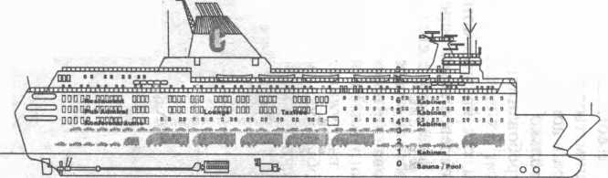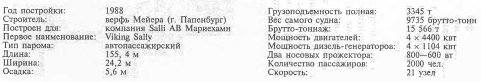 Общий вид парома «Эстония» в разрезе ТЕХНИЧЕСКИЕ ДАННЫЕ ПАРОМА «ЭСТОНИЯ»