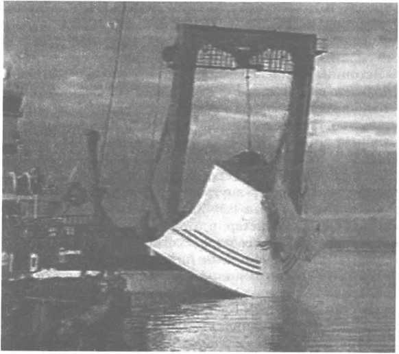 – после поломки указанных конструктивных элементов визир раскрылся. Под действием ударов волн и вследствие неконтролируемых движений визира, весящего 55 тонн, сломались шарниры левого борта, и визир оставался на весу только за счет штанг гидравлики левого борта;