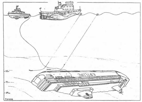 Причастная к этим вопросам шведский министр Инес Уусман, еще не освоившаяся в этой своей новой должности (в прошлом служащая почтового ведомства), рассказала удивленным репортерам, что люди, которые приняли бы участие в подъеме трупов, испытали бы серьезные психологические травмы, что водолазы неделями, а может быть, и месяцами не выходили бы из декомпрессионных камер и что это вообще невозможно. А в случае если бы захотели поднять со дна весь корабль, то следовало бы учитывать, что на многие мили вокруг воцарился бы такой смрад, что его не выдержали бы владельцы дачных домов на островах шведских шхер. Кроме того, в шведской прессе муссировалась тема огромных финансовых затрат, потребовавшихся на подъем парома или даже тел погибших. У меня в связи с этим возник вопрос: что, к тому моменту уже было принято решение о более дешевом варианте, а именно создании бетонного саркофага вокруг корпуса «Эстонии» стоимостью всего лишь 65 миллионов немецких марок?