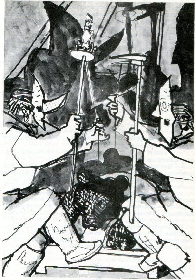 – Колхоз, говорите! – Седые брови Яксы взметнулись кверху. Он ударил в бубен, потребовав властно: – Выходи в круг, Колхоз! Клянись!..