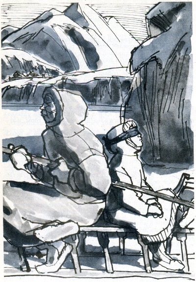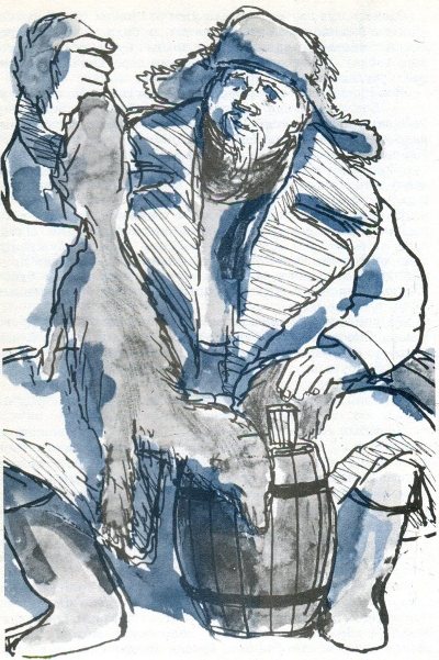 Купец Иван, человек тучный, коренастый, с рябым лицом и заплывшими от жира глазами, не торопясь отдавал приказания своим людям. А их у него было несколько человек. Люди купца тоже были одеты по-северному в шкуры. Рядом с каждым ружьё…