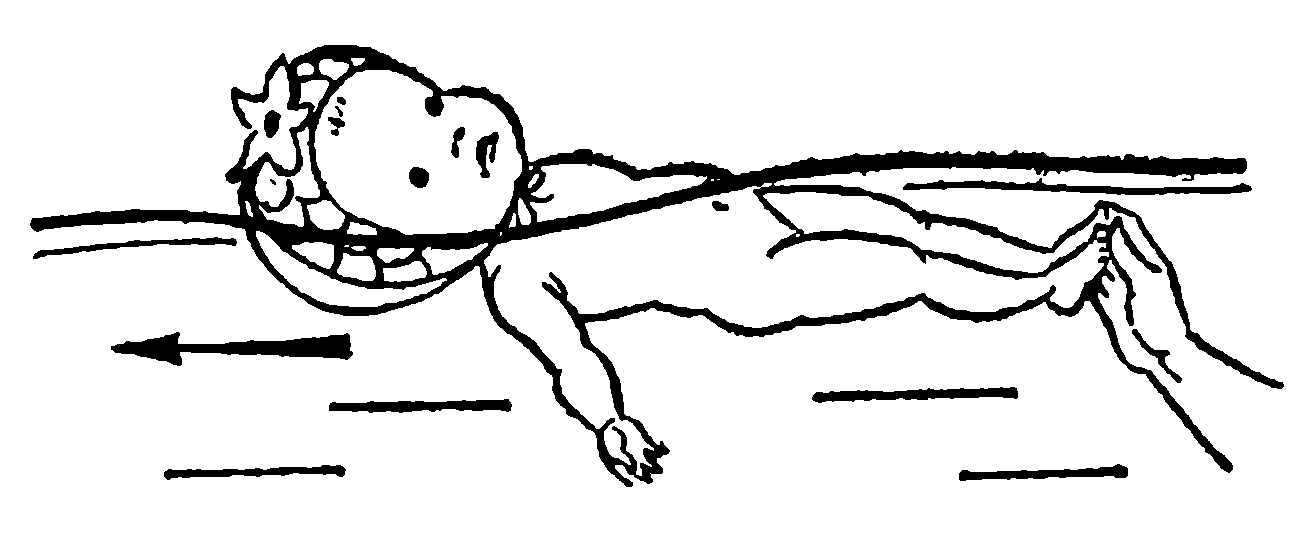 Следите, чтобы ребенок занимал во время проводки строго горизонтальное положение и был полностью (кроме лица) погружен в воду.