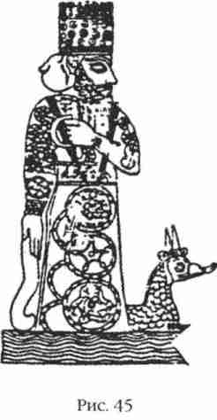 После этого перед народом появлялся Мардук в роскошном облачении, перед которым бледнели простые шерстяные одеяния древних богов Шумера и Аккада (рис. 45).