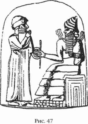 На стеле с записью законов Хаммурапи (рис. 47) царь получает их от Уіу/Шамаша – согласно приведенному выше списку его функции как бога справедливости теперь перешли к Мардуку. А в преамбуле к своду законов упоминаются Ану и Энлиль – его функции бога власти и совета присвоил Мардук – как боги, даровавшие Мардуку его статус: