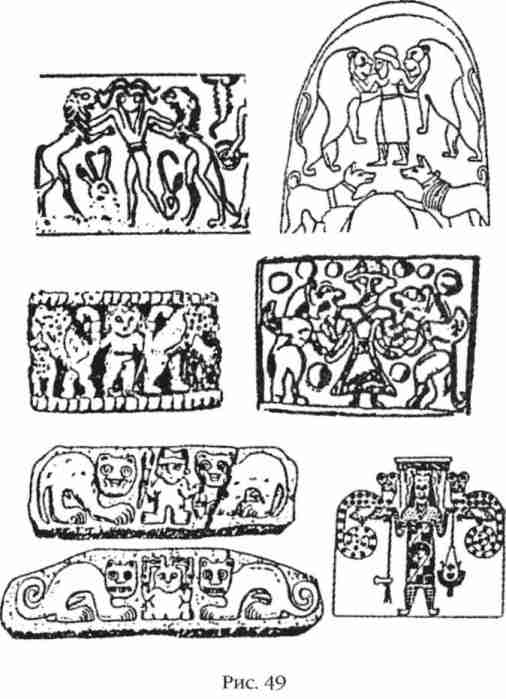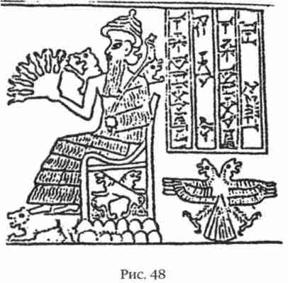 Сохранились разнообразные свидетельства о многочисленной шумерской диаспоре со своим языком, письменностью, символикой, обычаями, астрономическими знаниями, верованиями и богами. Помимо общих аспектов – религия с пантеоном богов, сошедших с неба, божественная иерархия, имена-эпитеты с одинаковым значением на разных языках, астрономические знания, в том числе о родной планете богов, зодиак с двенадцатью домами, практически идентичные мифы о сотворении мира, воспоминания о богах и полубогах, считавшиеся мифами, – существовало множество удивительно похожих черт, объяснить которые можно лишь присутствием шумеров. Это проявилось в распространении в Европе символа Нинурты в виде двухголового орла (рис. 48), в том факте, что три европейских языка – венгерский, финский и баскский – похожи только на шумерский язык, а также в широком распространении по всему миру – даже в Южной Америке – изображения Гильгамеша, который голыми руками сражается с двумя свирепыми львами (рис. 49).