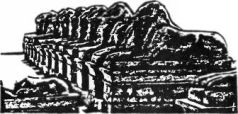 Руины римских храмов до сих пор сохранились на вершине огромной каменной платформы; не тронутой временем, разрушительными силами природы и деятельностью человека осталась и сама платформа. Её плоская верхняя часть покоится на рядах каменных блоков, вес которых достигает сотен тон. С древних времён наибольшую известность приобрёл так называемый «трилитон» – группа из стрех колоссальных каменных блоков, лежащих вплотную друг к другу и образующих средний ряд платформы, на который приходилась наибольшая нагрузка (рис. 72 – для сравнения на нём изображена человеческая фигура). Каждый из этих огромных мегалитов весит около 1100 тонн; ни один современный механизм не способен поднять или переместить такой вес.