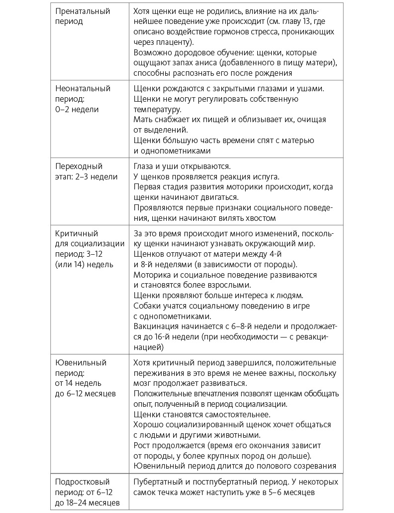 Период от 3 до 12–14 недель, пожалуй, самый важный в жизни собаки. Он критичен для социализации, хотя существует некоторая неопределенность относительно его окончания (табл. 2.2)[37]37