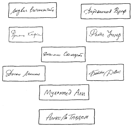 Тут висела коллекция автографов, которые Адам приобретал примерно по штуке в год. Алекс считал ее самой что ни на есть удачной – по подбору имен. Компактная, без всякого выпендрежа, подбор имен почти случайный (самого себя Алекс, конечно, в расчет не брал – шутка, не больше) – и составлена с такими большими промежутками от одной покупки до другой.