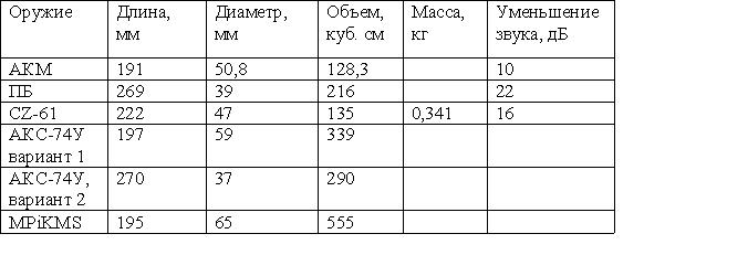 Таблица 9. Технические характеристики глушителей