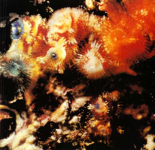 Кольчатые черви – спиробранхи – питаются микропланктоном, который они захватывают веером расположенных спиралеобразно лучей. В течение всей жизни они не покидают своих мест на скалистых утесах.