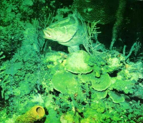 День постепенно угасает. Настала ночь. Уходя под воду, мы зажигаем фонари и достигаем дна. Риф, на котором в солнечные часы бурлит жизнь, сейчас кажется вымершим. В этих чистых водах планктон почти отсутствует. В свете фонарей вырисовываются тонкие узоры кораллов и мельчайшие беспозвоночные, нашедшие в них убежище. У видов, неподвижно прикрепленных к субстрату, ритм деятельности ослаблен. Виды, свободно перемещающиеся в толще воды отсутствуют. В Долине отрады, которую еще утром заполняли тысячи мероу, сейчас не видно ни одного…