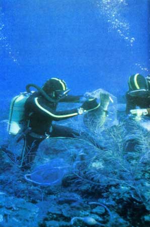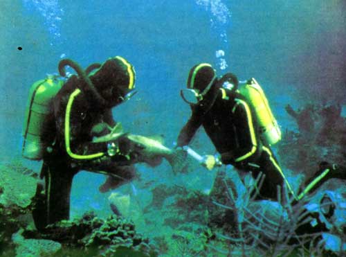 Чтобы предпринять эксперимент по оплодотворению in vitro в большом аквариуме на «Калипсо», я поручил Бернару Делемоту и Альберу Фалько собрать икру самки, что они и проделали с помощью большого шприца, предварительно усыпив рыбу.