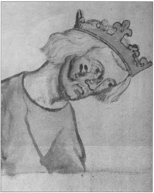 Этот рисунок из коллекции знаменитого провансальского ученого Пейреска (нач. XVII в.), несомненно, – подражание ныне утраченным фрескам, которые дочь короля Бланка повелела выполнить в церкви монастыря кордельеров в Аурсине, куда она удалилась. Согласно другому преданию, на ней изображена голова Людовика Святого, совершающего омовение ног нищим, и списана с одной из фресок Святой капеллы. Это кающийся король, вернувшийся из крестового похода, благочестивые дела и весь вид которого говорят о том, что он встал на путь создания образа Христа, Человека скорбей. Карпентра, Ингембертинская библиотека.