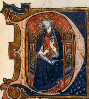 В инициал D, украшающий пролог-посвящение Людовику Святому, заказчику сочинения «Spéculum historiale» Винцента из Бове, вписана фигурка короля, восседающего на троне с короной на голове и со скипетром, увенчанным цветком лилии, в правой руке. Судя по жесту левой руки, король принимает это сочинение. Рукопись датируется третьей четвертью XIII в.: король с бородой, но без нимба. Дижон, Муниципальная библиотека.