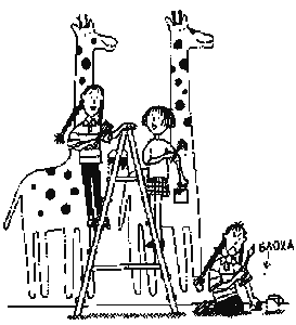 Проще простого. Клякса – и блоха готова! И если бы ты поменьше болтала и не лезла поперёк старшей сестры в пекло, то и рисовала бы блоху, а в оставшееся время сидела бы сложа руки. Ну нет! Тебе понадобилось рисовать жирафа вместе с этой глупой девчонкой Джуди!