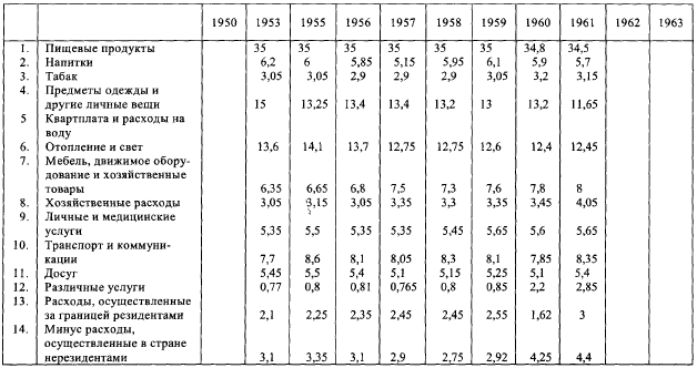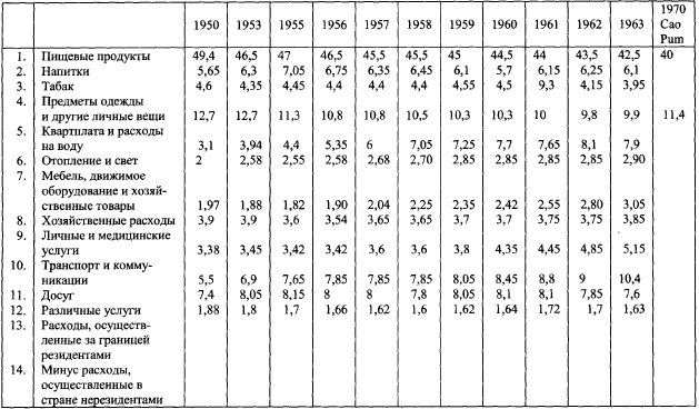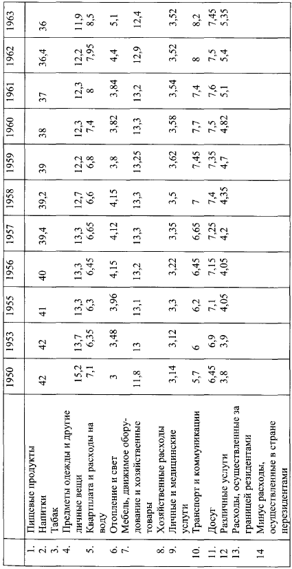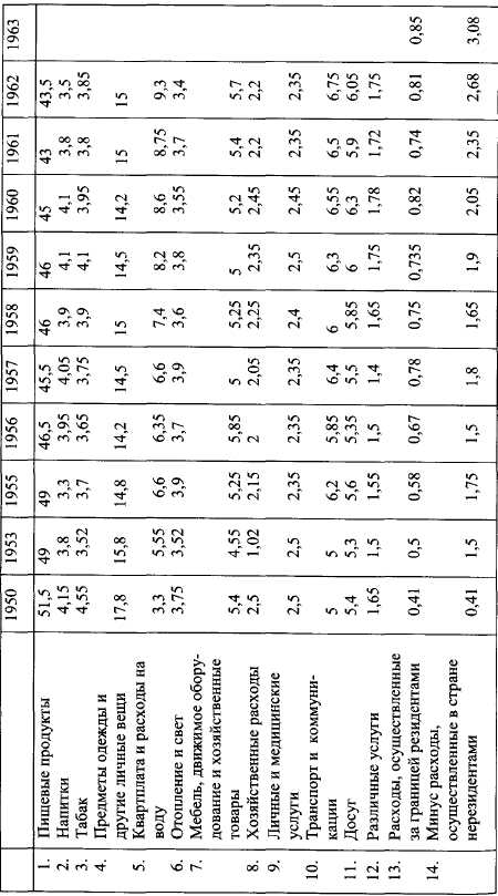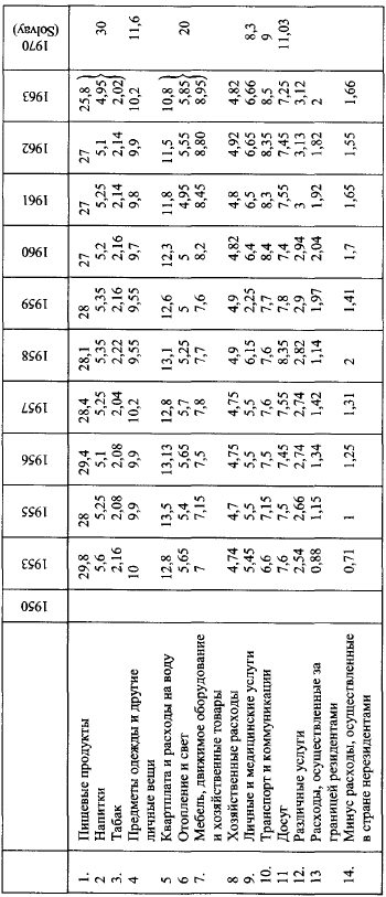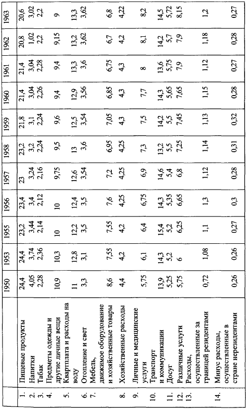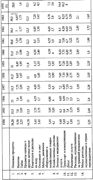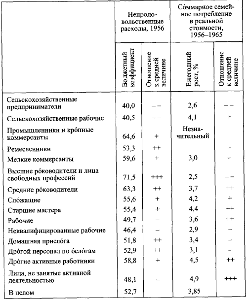 Расходы на гигиену и медицинское обслуживание выросли от 6 % бюджета домашнего хозяйства до 11 % в 1965 г., расходы на транспорт и коммуникации – от 6 до 9 % (но эти последние, вероятно, частично являются результатом новых условий жилья и труда).