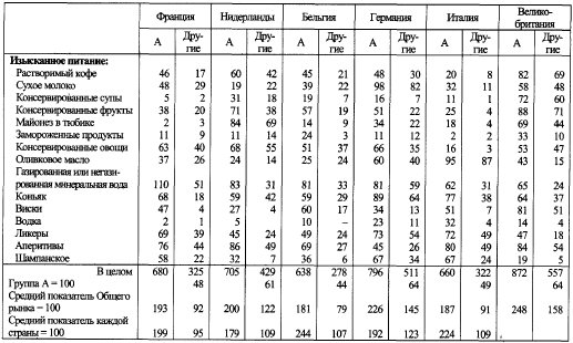 Источник: Исследование А. Пьятье «Selection» («221 750 000 потребителей), а также материал „Структуры и перспективы европейского потребления“.