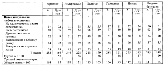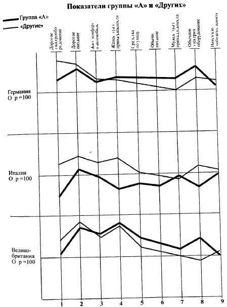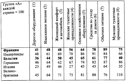 По отношению к среднему показателю Общего рынка = 100 позиция групп «А» разных стран будет следующей: