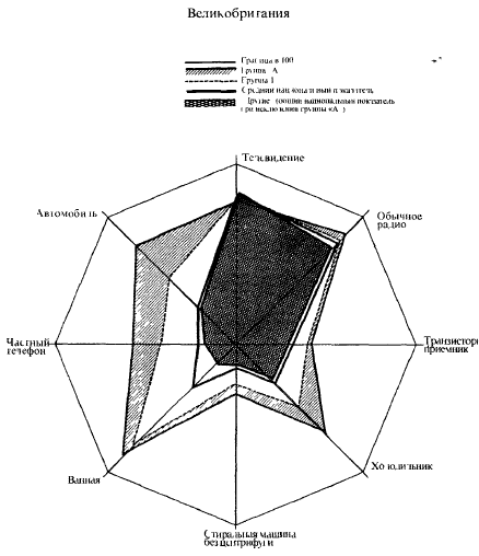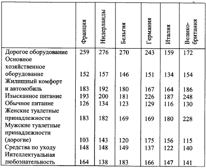Если бы европейская гомогенность группы «А» была подтверждена, жители семи стран могли бы служить общей моделью потребления. Шансы уравнивания образов жизни для каких-нибудь 200 млн менее благополучных потребителей были бы тогда больше, особенно в ситуации роста и перераспределения доходов на одного жителя, что было выявлено в предшествующих таблицах.