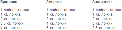 В таблице мы приводим примеры соотношения единиц измерения (столовых ложек) в том случае, если их количество приходится умножать: