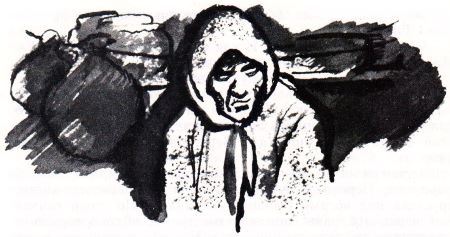 В кухне жарко топилась печь. Над котлом, закрытым плоской дощатой крышкой, белым облаком висел пар. Сияли огненным блеском медные кастрюли. Темнели гряды алюминиевых мисок на узких полках. Всё, как обычно. Только вместо Мари у чана с картошкой сидела незнакомая женщина в белом платочке, туго натянутом до густых чёрных бровей.