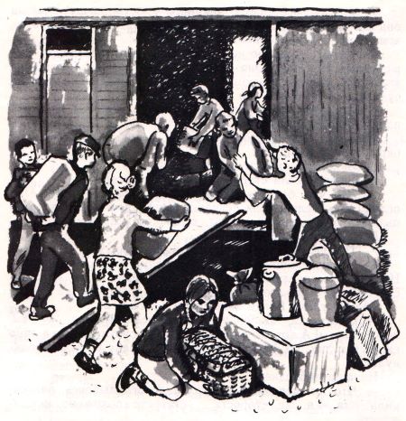 Начальник станции пролез под цистерной и подошёл к теплушкам, в которые грузился детский дом.