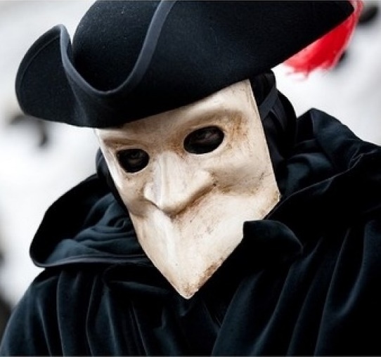 Я уже направлялся туда. Двое из людей Жаклин ждали у двери, которая оставалась открытой на улицу. С другой стороны молча стояла женщина в красном плаще, держа в руках большую коробку. На ней была muretta – черная маска, закрывавшая все, кроме глаз.