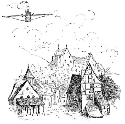 Аэроплан пролетел над городом сравнительно низко. Увидев небывалое явление, все его жители высыпали на улицы, и их говор доносился до воздухоплавателей в виде смутного шума. Скорость "Альбатроса", – так назвал Сломка свое детище, – равнялась 115 километрам в час, т. е. почти вдвое превосходила скорость, самого быстрого поезда.
